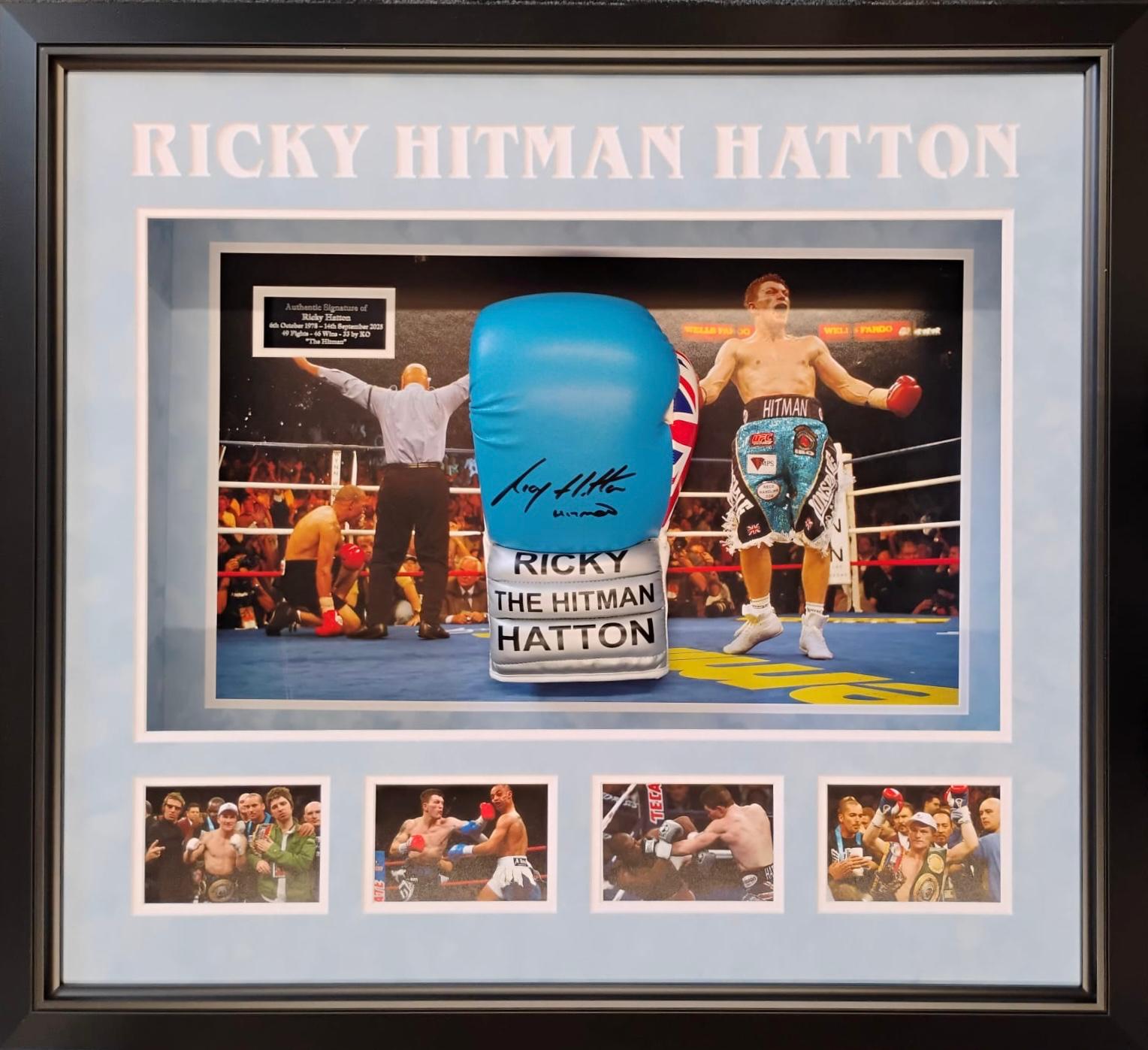 Own a stunning piece of British boxing history with this authentic Ricky Hatton MBE signed glove, beautifully presented in a boxed frame display. Personally hand-signed by “The Hitman” himself, this collectible celebrates one of the most beloved fighters in modern boxing.