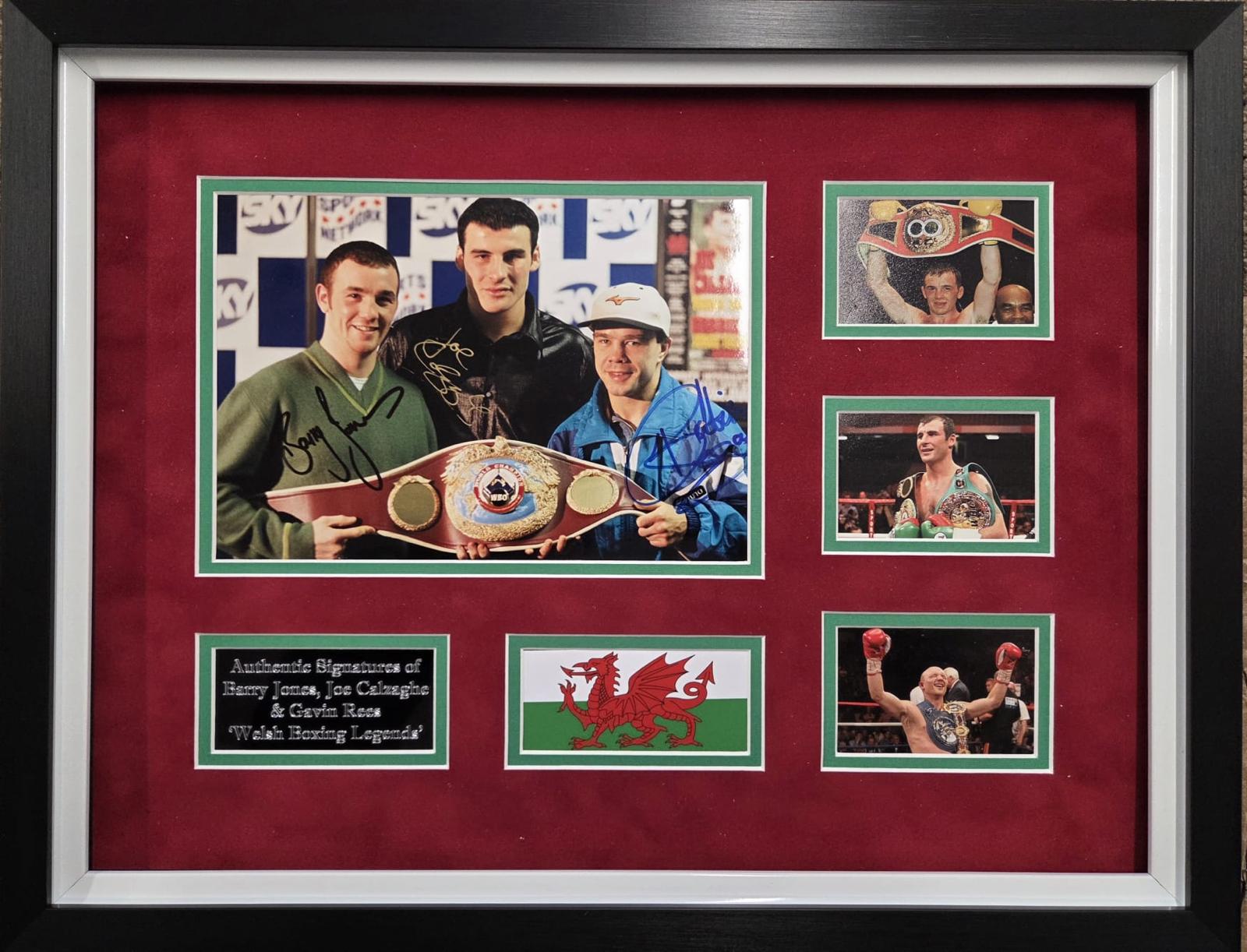 Own a rare and highly collectible piece of Welsh boxing history with this stunning photograph signed by three champions: Barry Jones, Joe Calzaghe, and Gavin Rees.